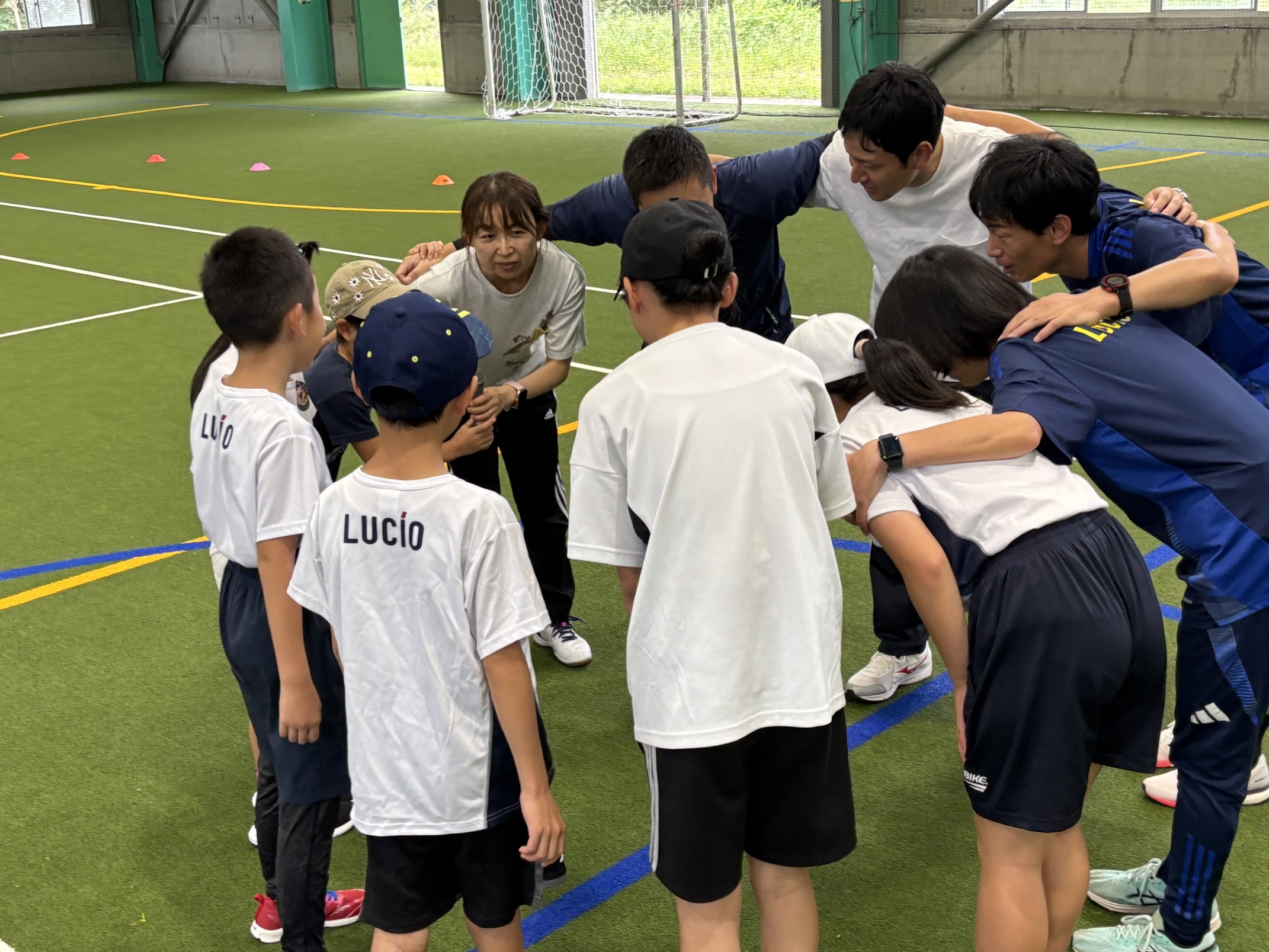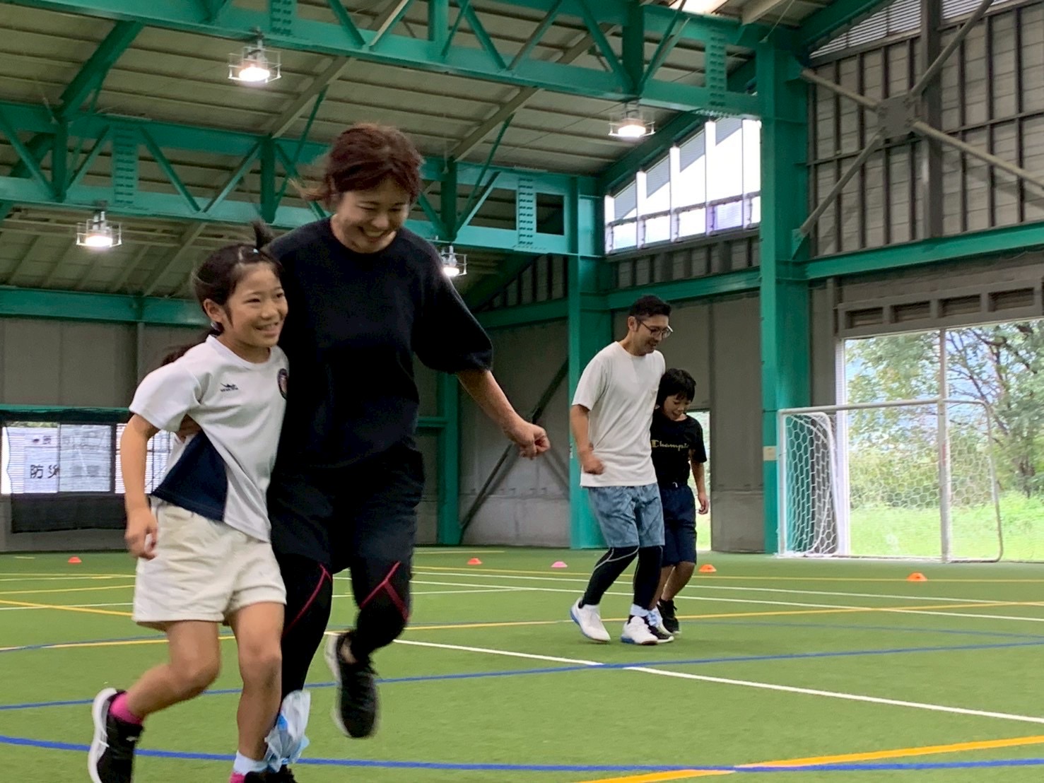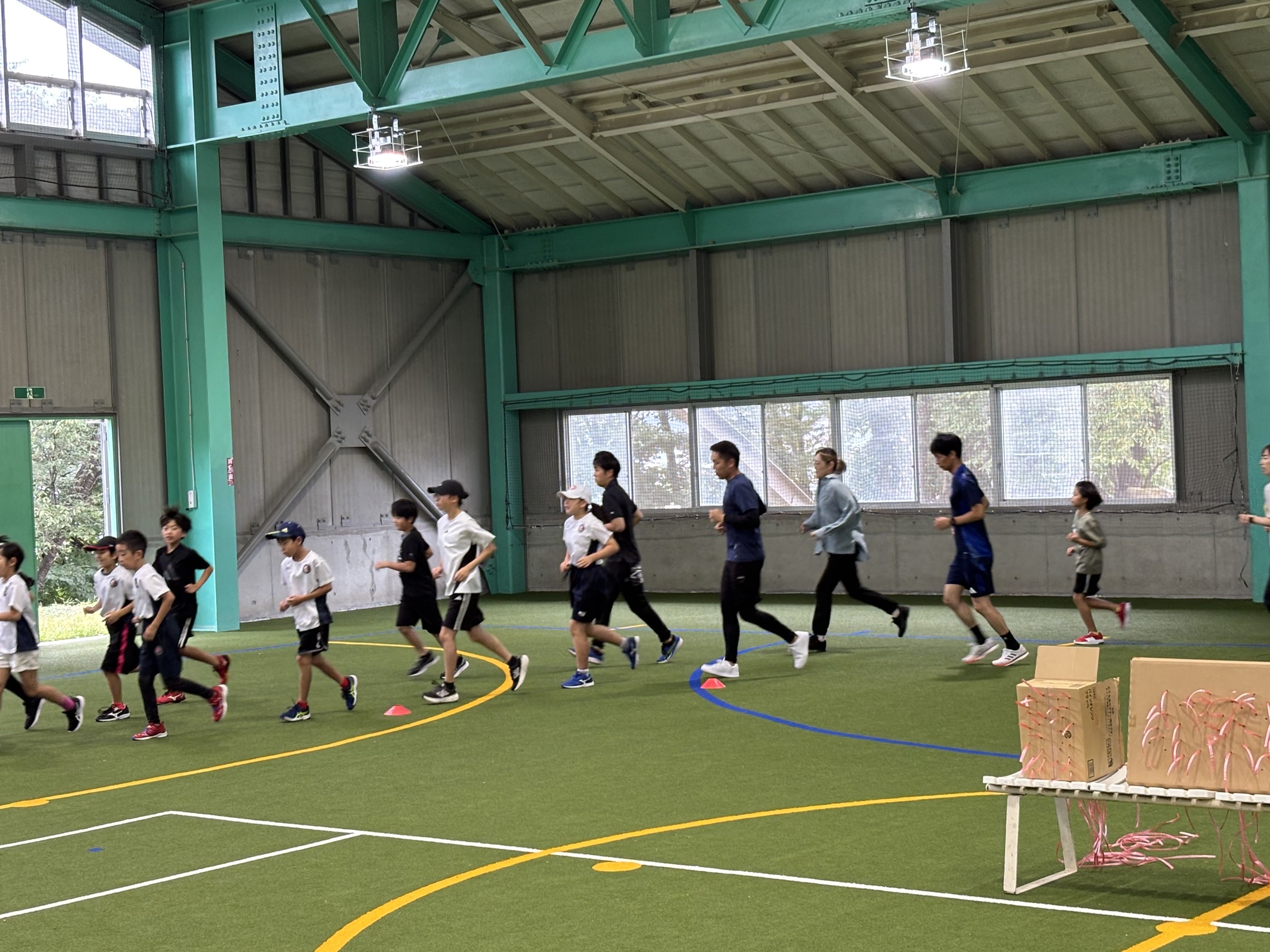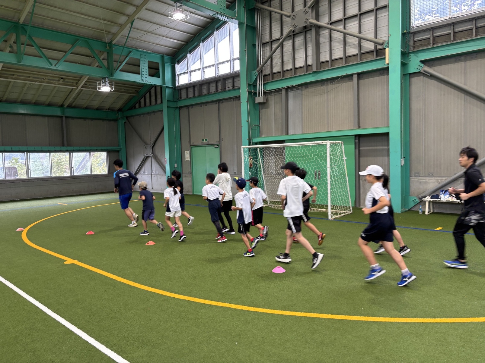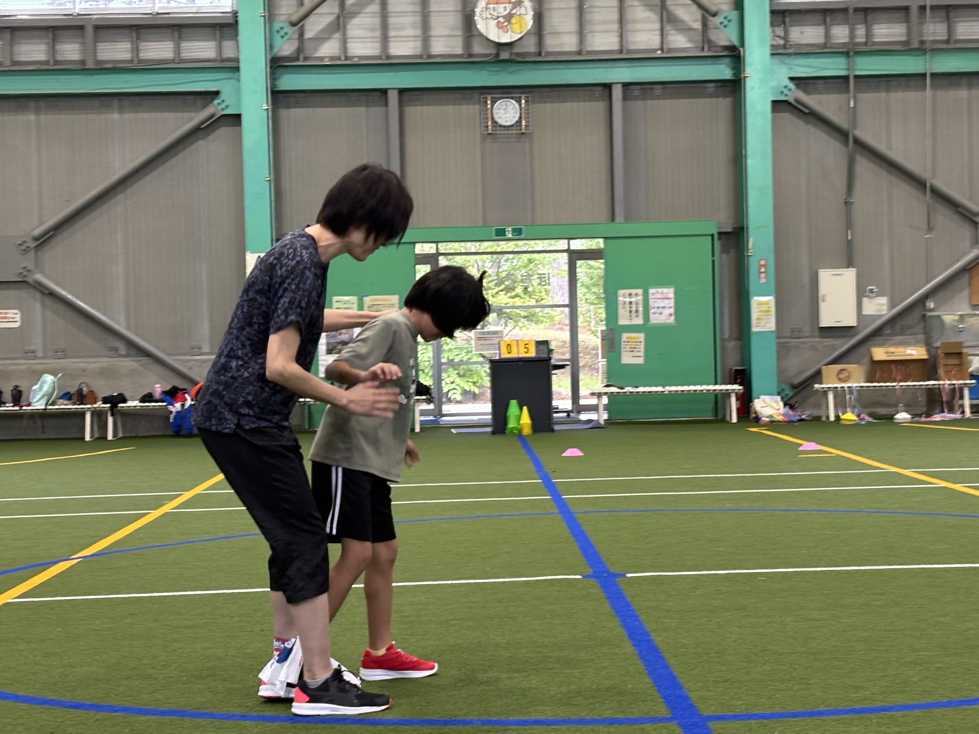 まずは、いつも練習時にやっているウォーミングアップを保護者の皆さんにも体験していただきました。ケガの予防だけでなく、パフォーマンス向上のため、大切にしている部分を説明しながら念入りに行いました。