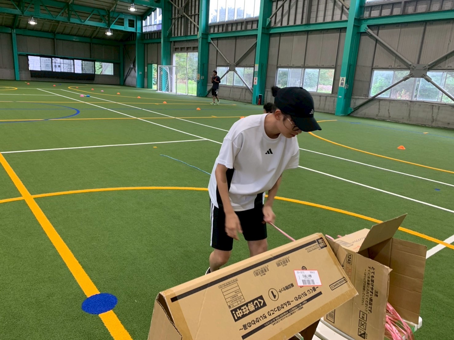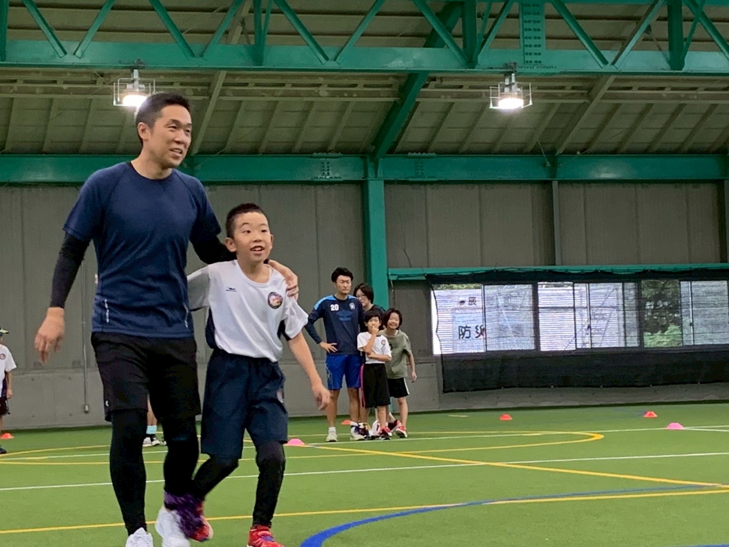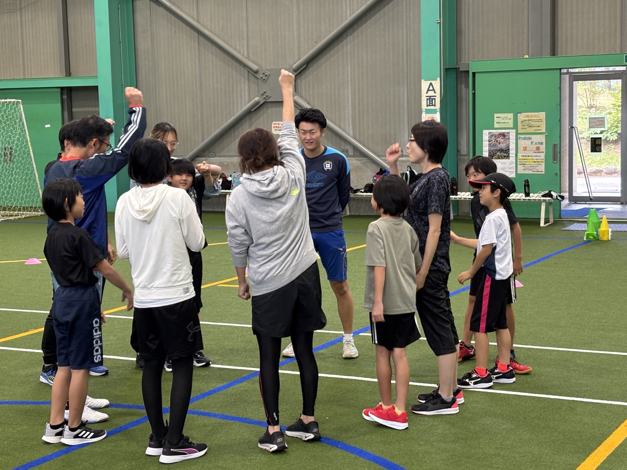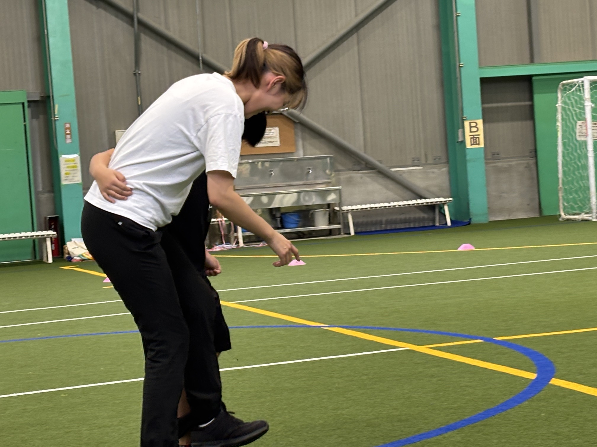 まずは、いつも練習時にやっているウォーミングアップを保護者の皆さんにも体験していただきました。ケガの予防だけでなく、パフォーマンス向上のため、大切にしている部分を説明しながら念入りに行いました。