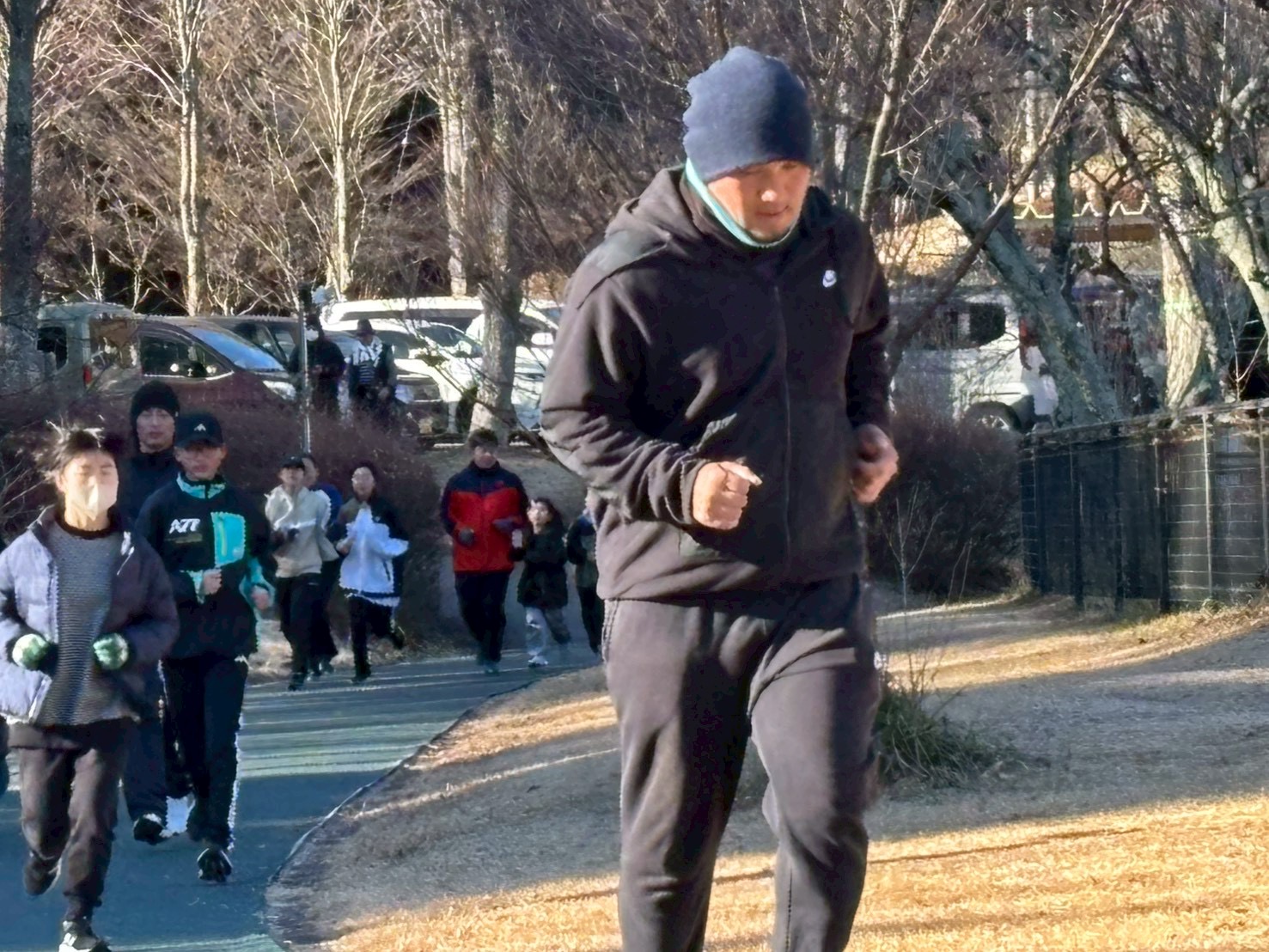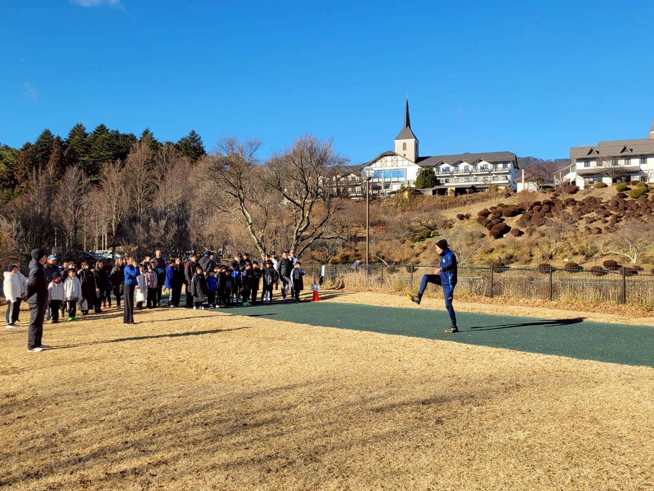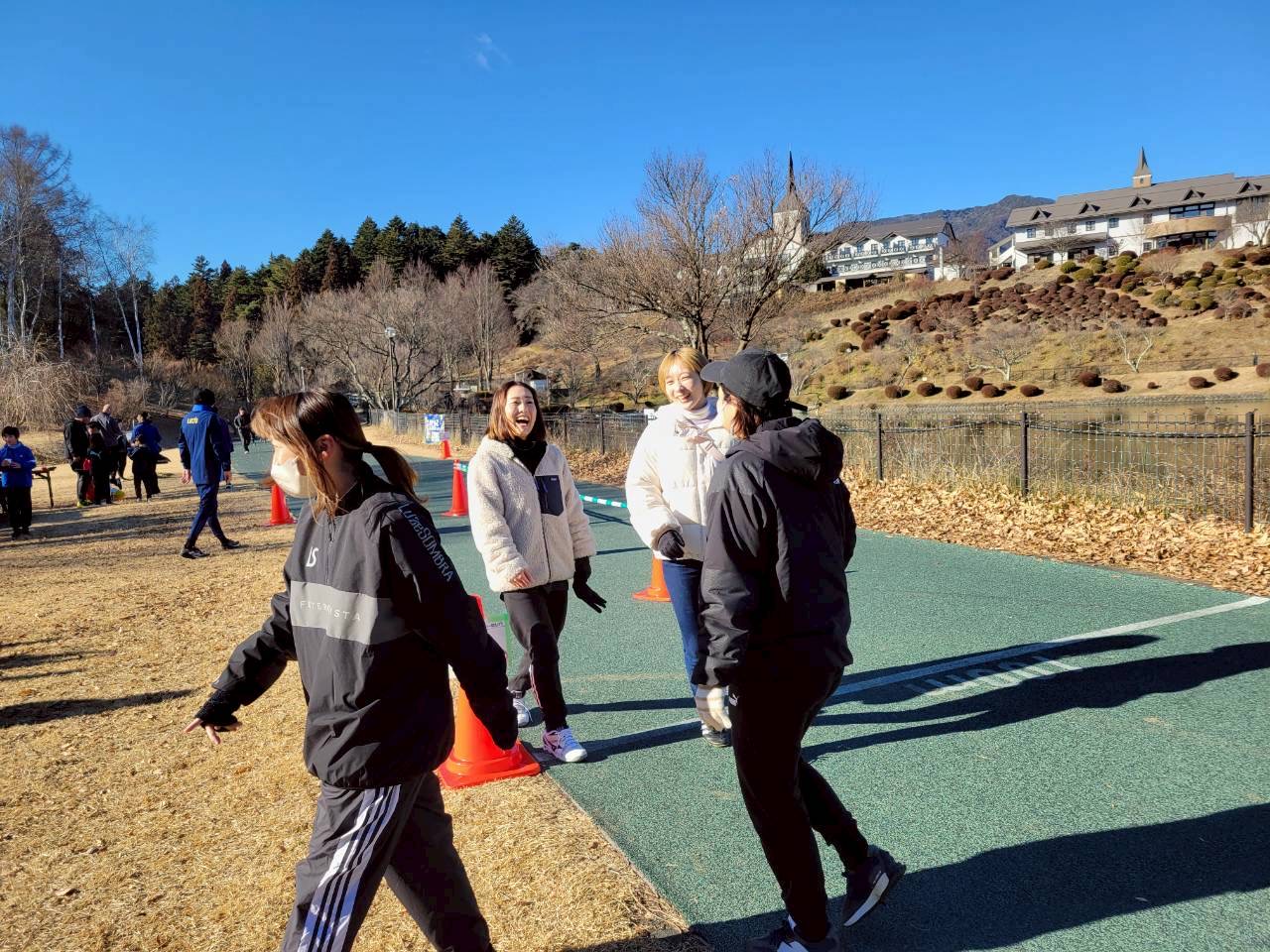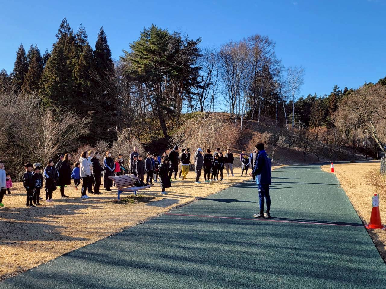 オープニングセレモニーの後、全員で準備体操と動的ストレッチ(体を動かしながら行うストレッチ)を行い、スタート前には箱根駅伝に2回出場しているリュシオA.Cスタッフによるランニングのアドバイスを受けました。