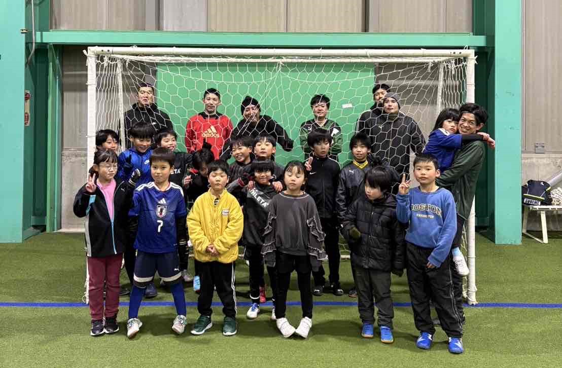 長い年末年始のお休みが終わり、まだ気持ちも体もお正月モードが抜け切らない方も多いかと思います。また3連休には今シーズン最強寒波の到来も予想されており、厳しい寒さも身に染みるところではありますが、10組21名の親子にお集まりいただき、みんなで蹴り始めを楽しみました。