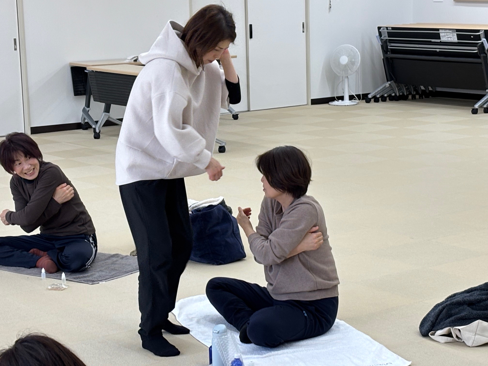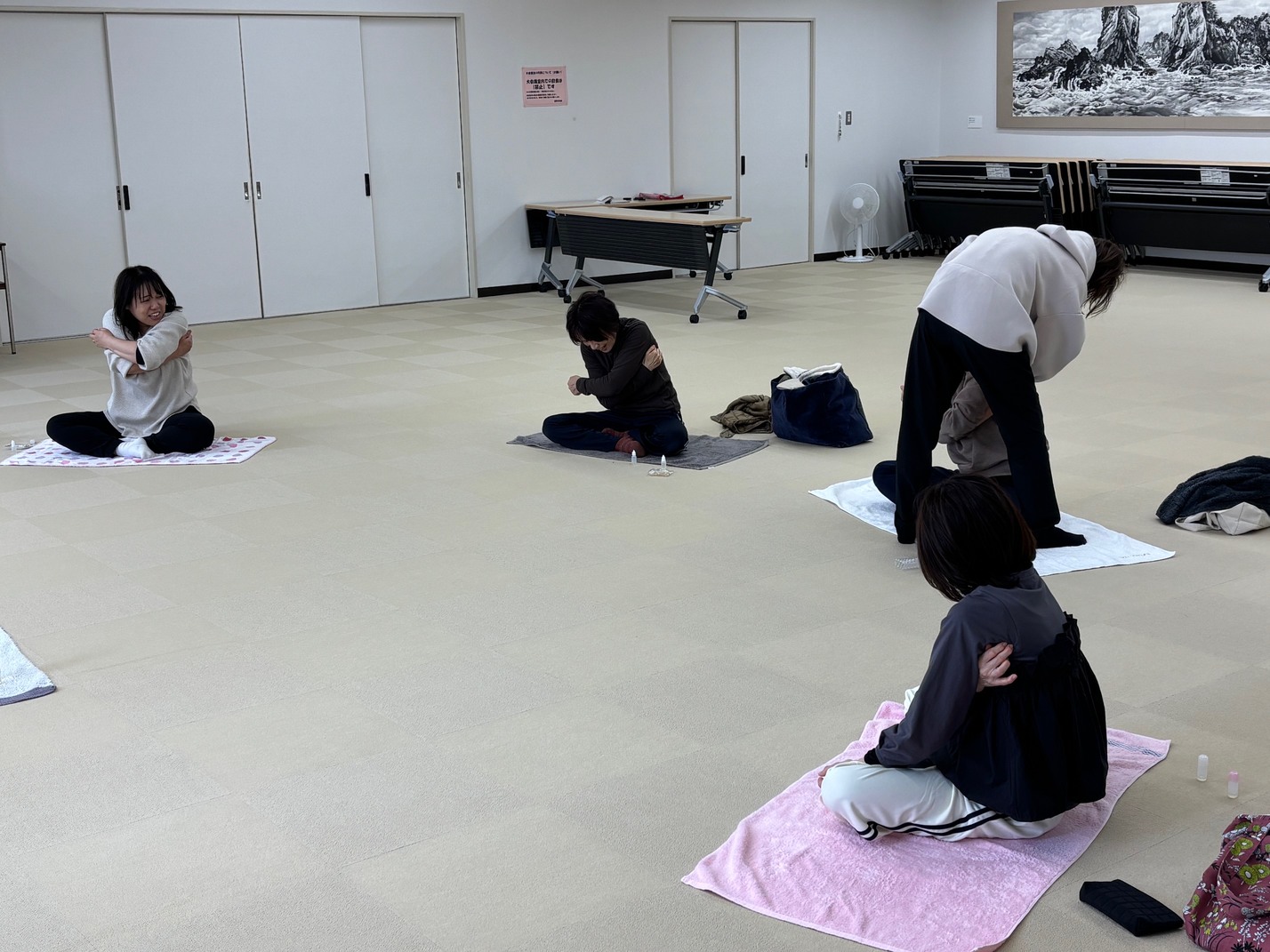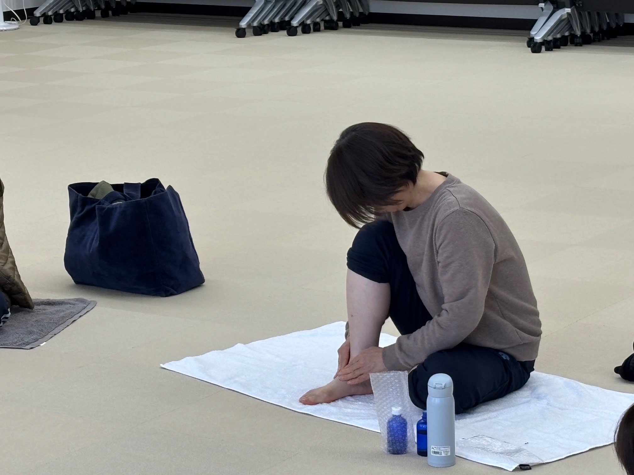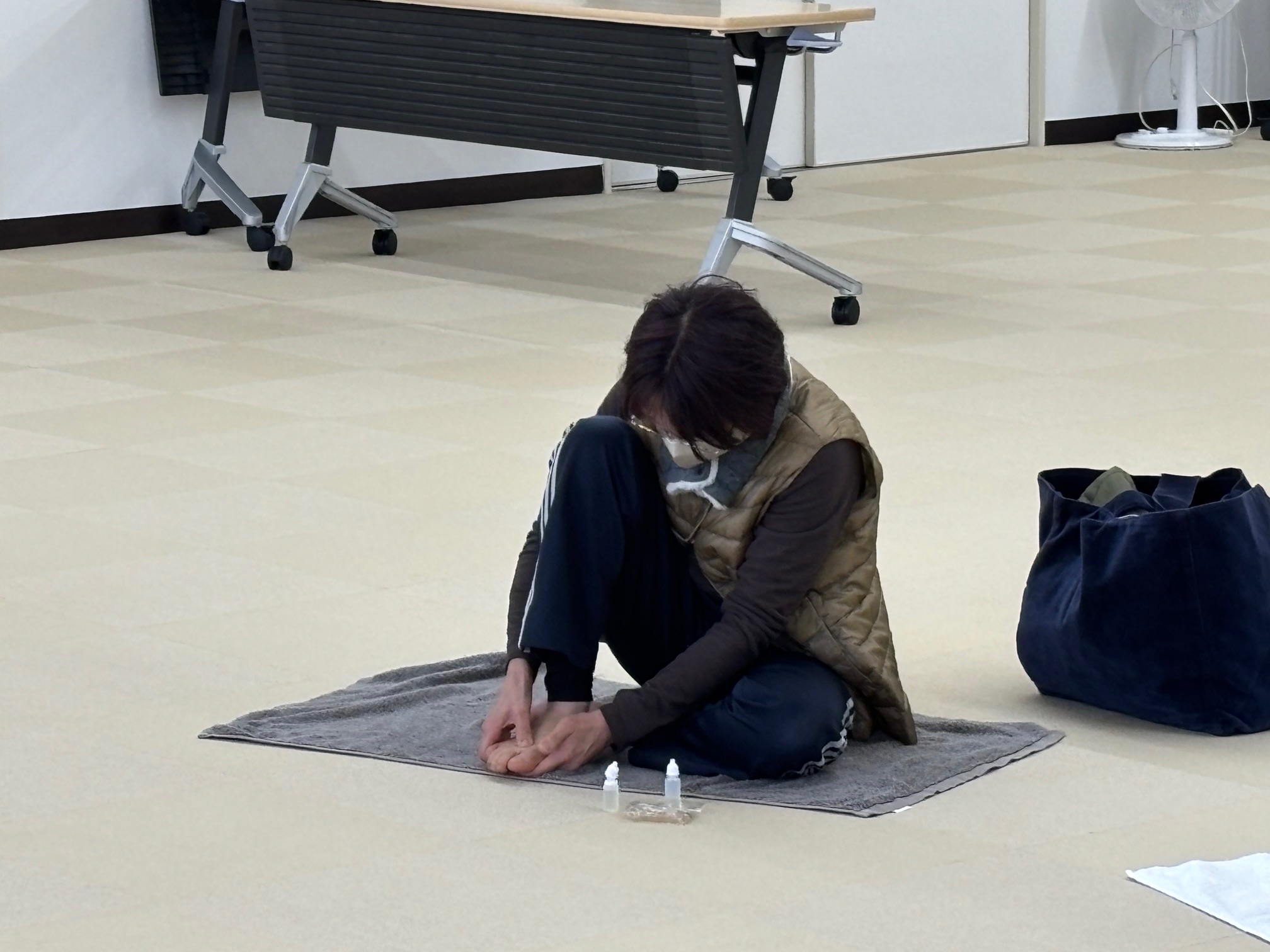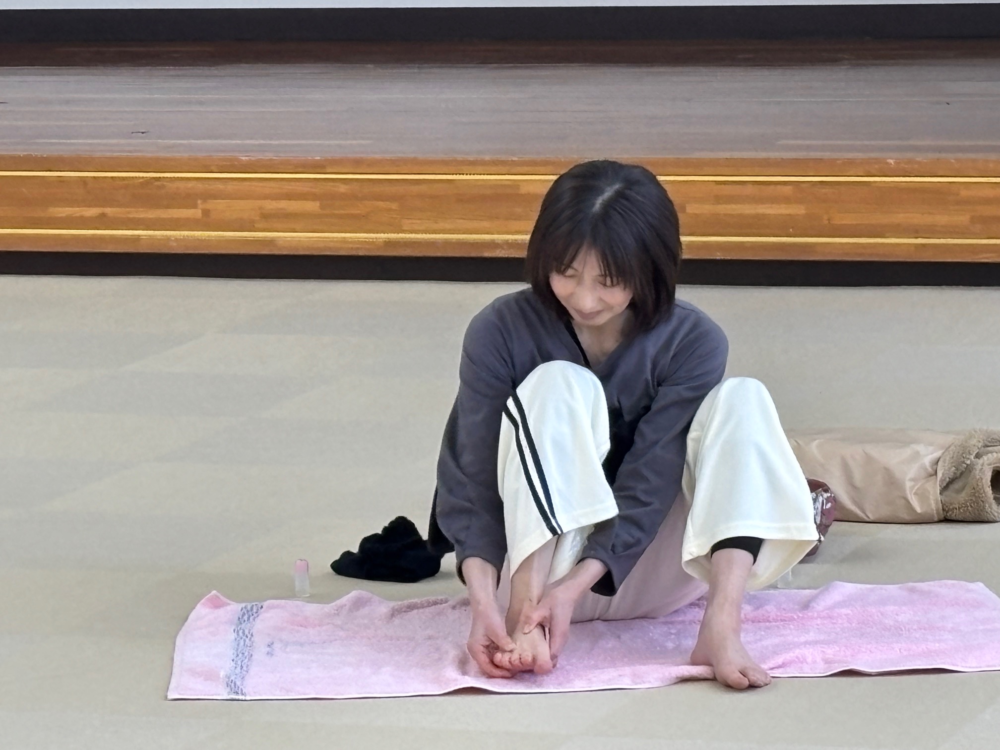 『足、腕、脇』を中心に体操やアロマオイルを使ったセルフマッサージを行いました。