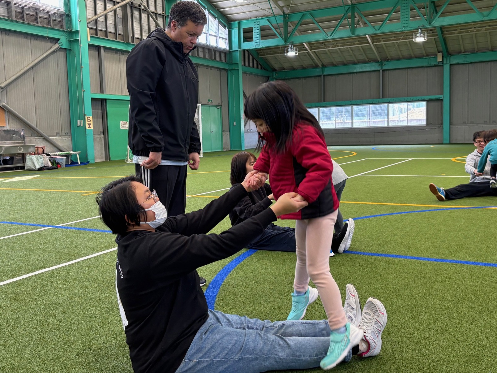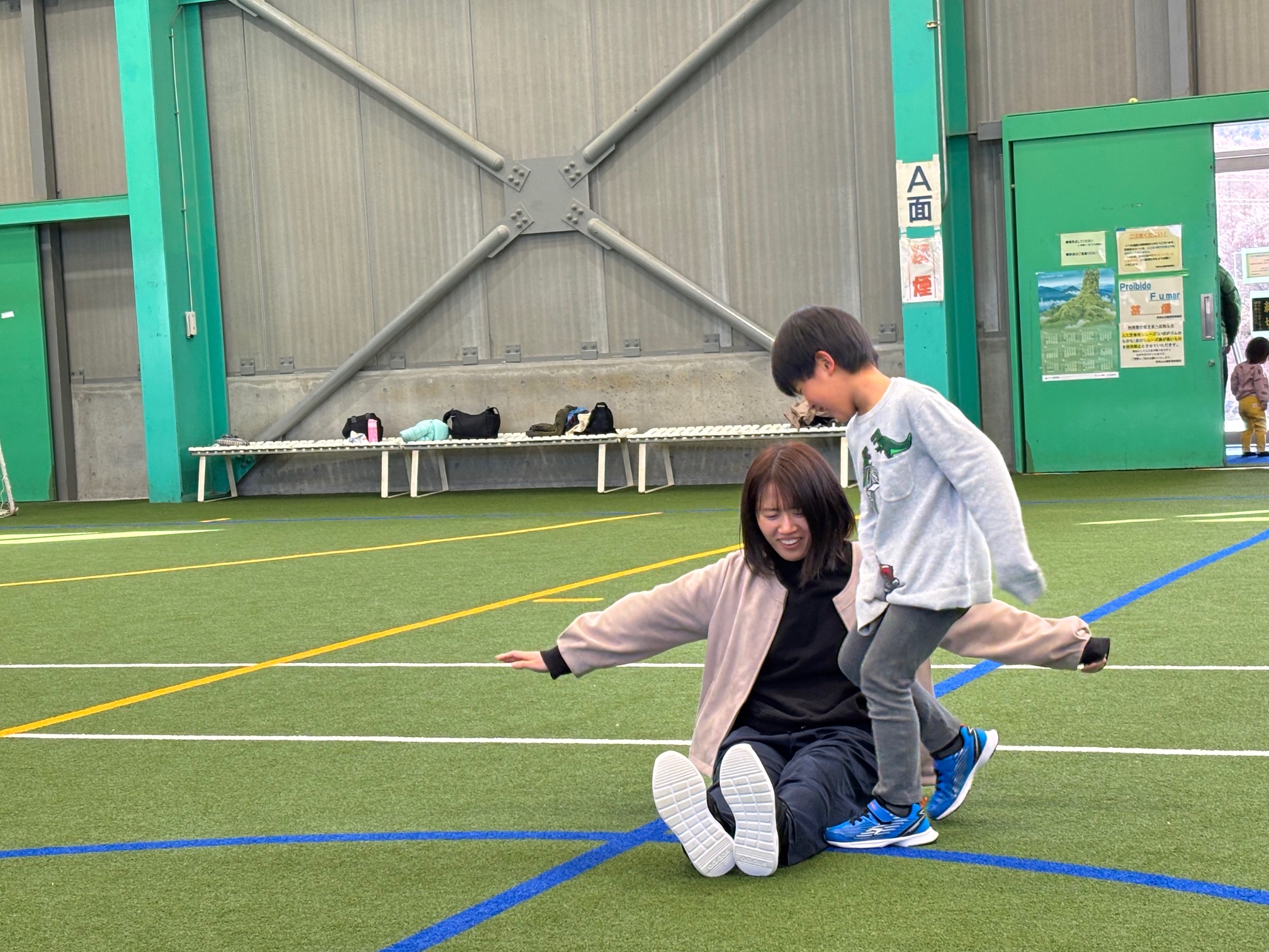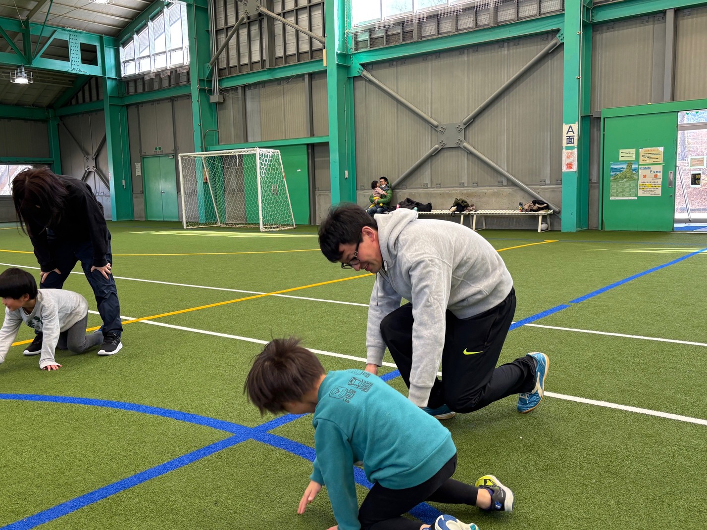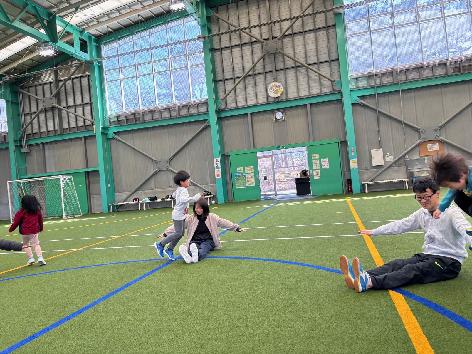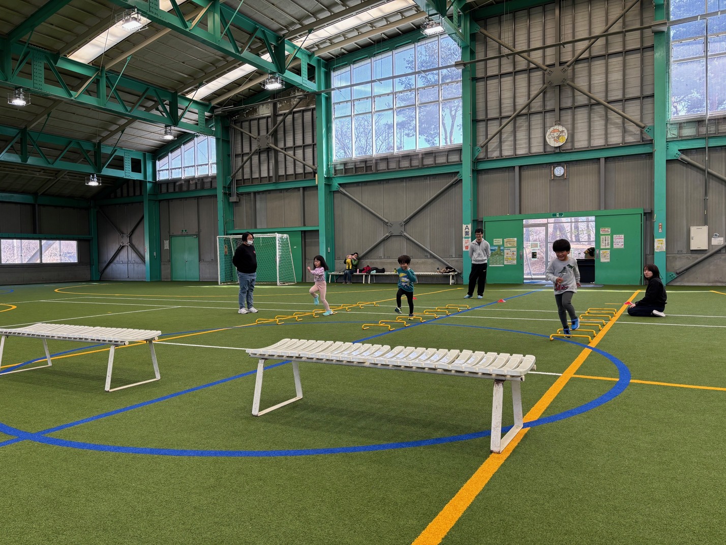 カナダ出身のパット先生と一緒にいろんな遊びや運動をしながら、少しずつ英語に触れ合っていく『リュシオアカデミー2025 パット先生の英語と運動教室』今年度最後の教室が荒神山スポーツ公園内のほたるドームで開催されました。