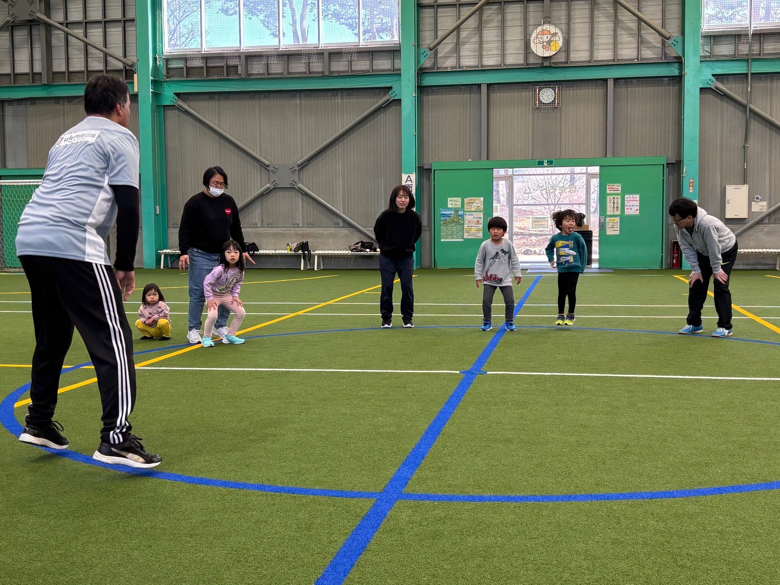 カナダ出身のパット先生と一緒にいろんな遊びや運動をしながら、少しずつ英語に触れ合っていく『リュシオアカデミー2025 パット先生の英語と運動教室』今年度最後の教室が荒神山スポーツ公園内のほたるドームで開催されました。